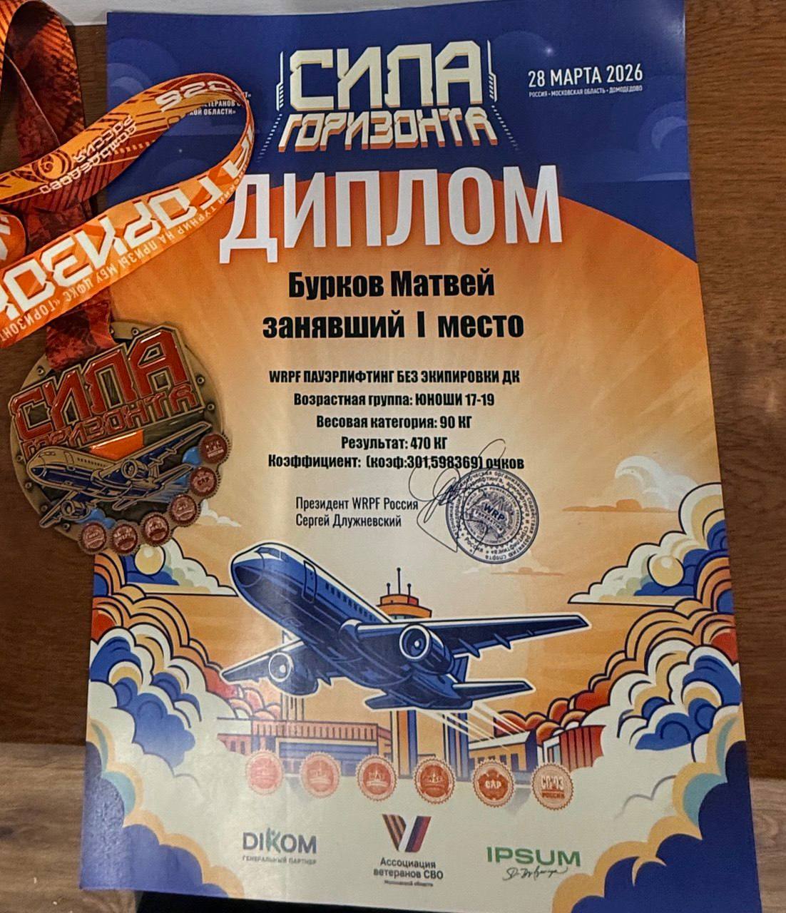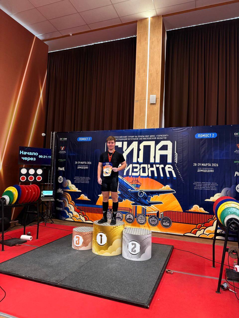 Занявшего 1 место в Домодедово «Сила Горизонта», пауэрлифтинг среди юношей.